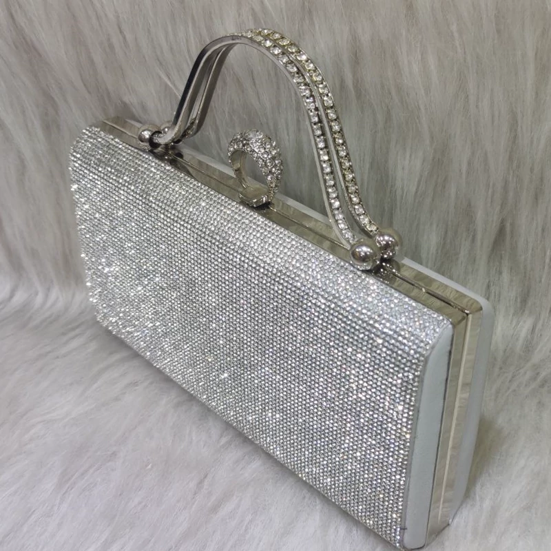 کیف مجلسی زنانه و دخترانه نگین ریز دو دسته نیکل