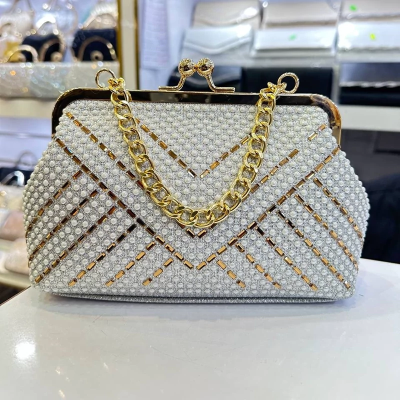 کیف مجلسی نگین دار شیک دهانه طلایی
