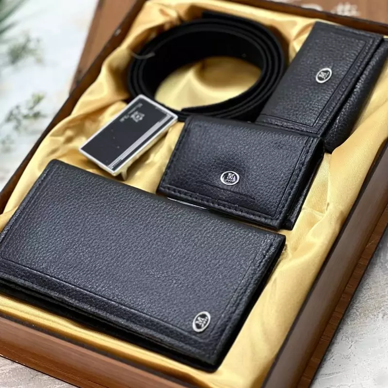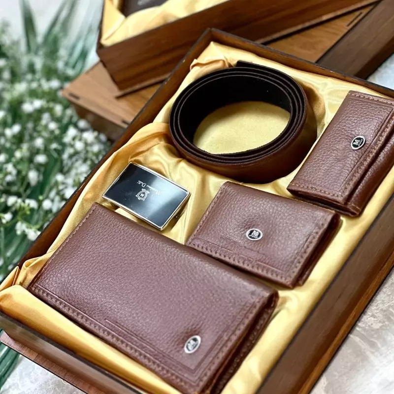 ست مردانه کیف کیف کارت کیف پالتویی کمربند در جعبه بسار زیبای چوبی در ۳ رنگ شیک و زیبا مناسب هدیه روز مرد روز پدر هدیه ولنتاین