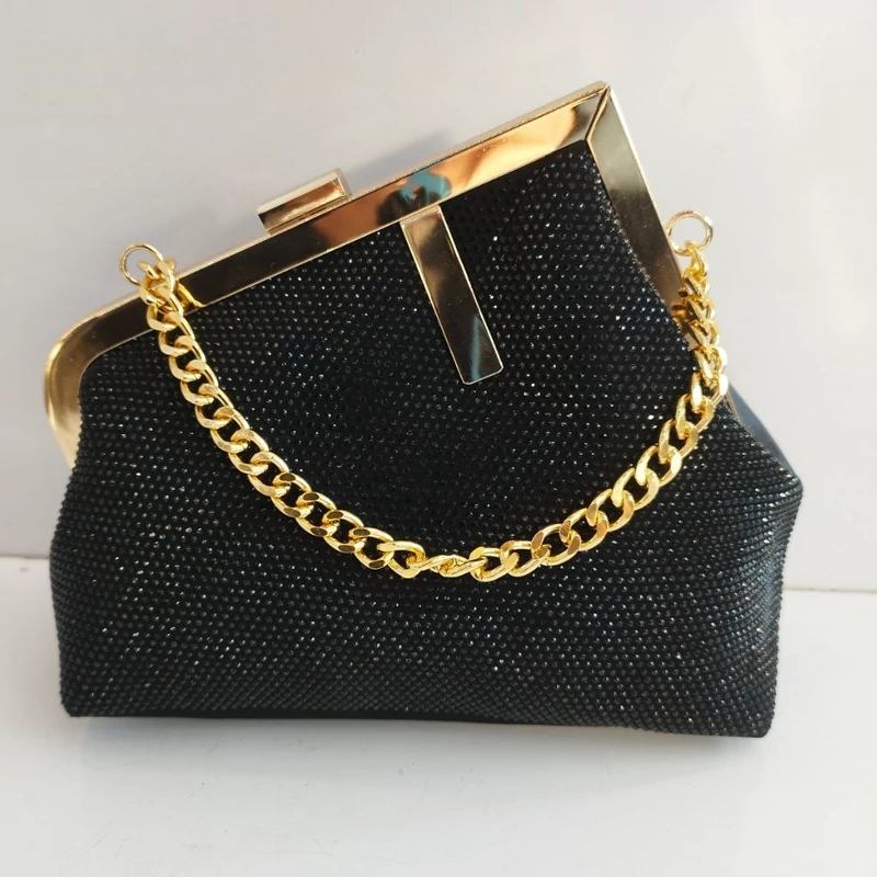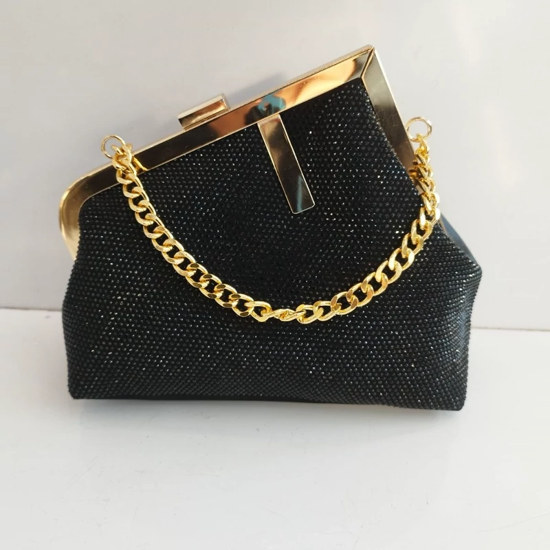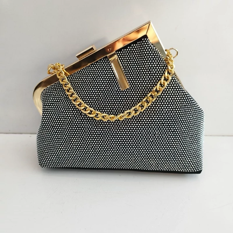 کیف زنانه و دخترانه مجلسی شیک نگین دار لبه طلایی